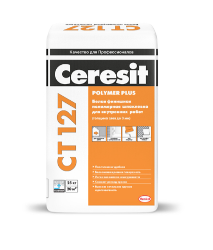 Полимерная шпаклевка CT 127 предназначена для финишного выравнивания поверхностей и заполнения мелких дефектов на бетонных, цементно-известковых, цементно-песчаных, гипсовых и т.п.