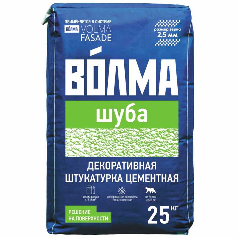 Декоративная штукатурка "ВОЛМА-Шуба" предназначена для нанесения тонкослойного декоративного покрытия "шуба" (зернистое) внутри и снаружи зданий, в том числе в фасадных теплоизоляционных системах. Полученное покрытие может быть окрашено акриловыми, силикатными и силиконовыми красками.